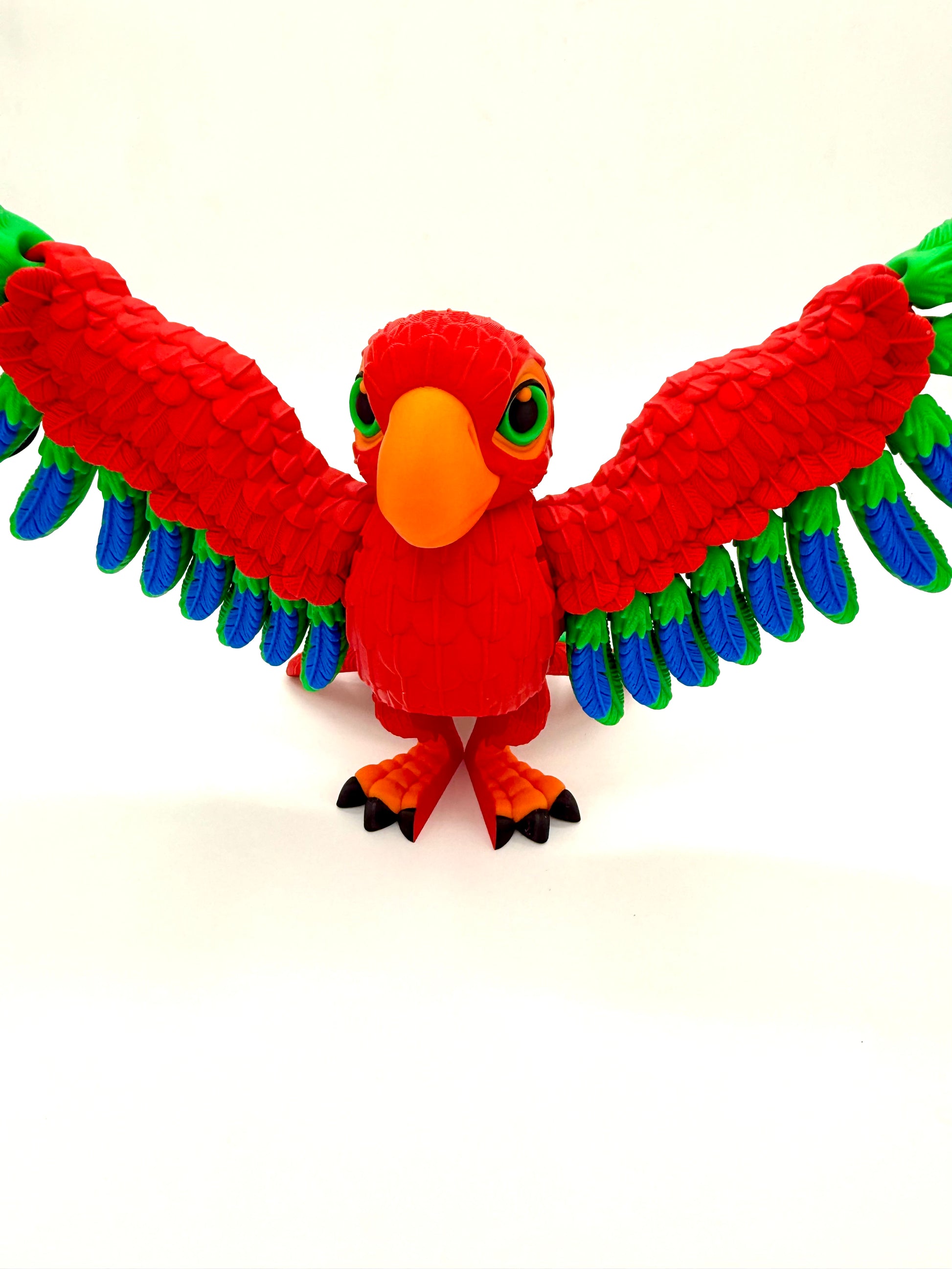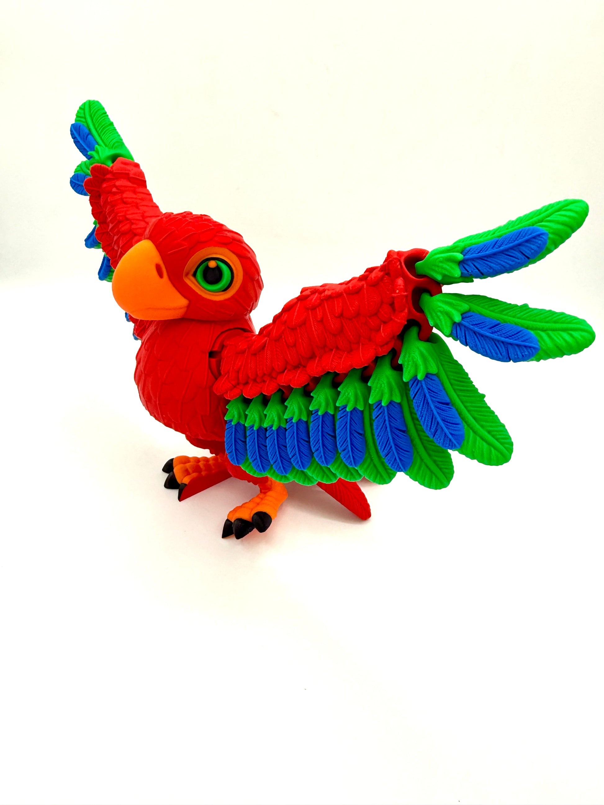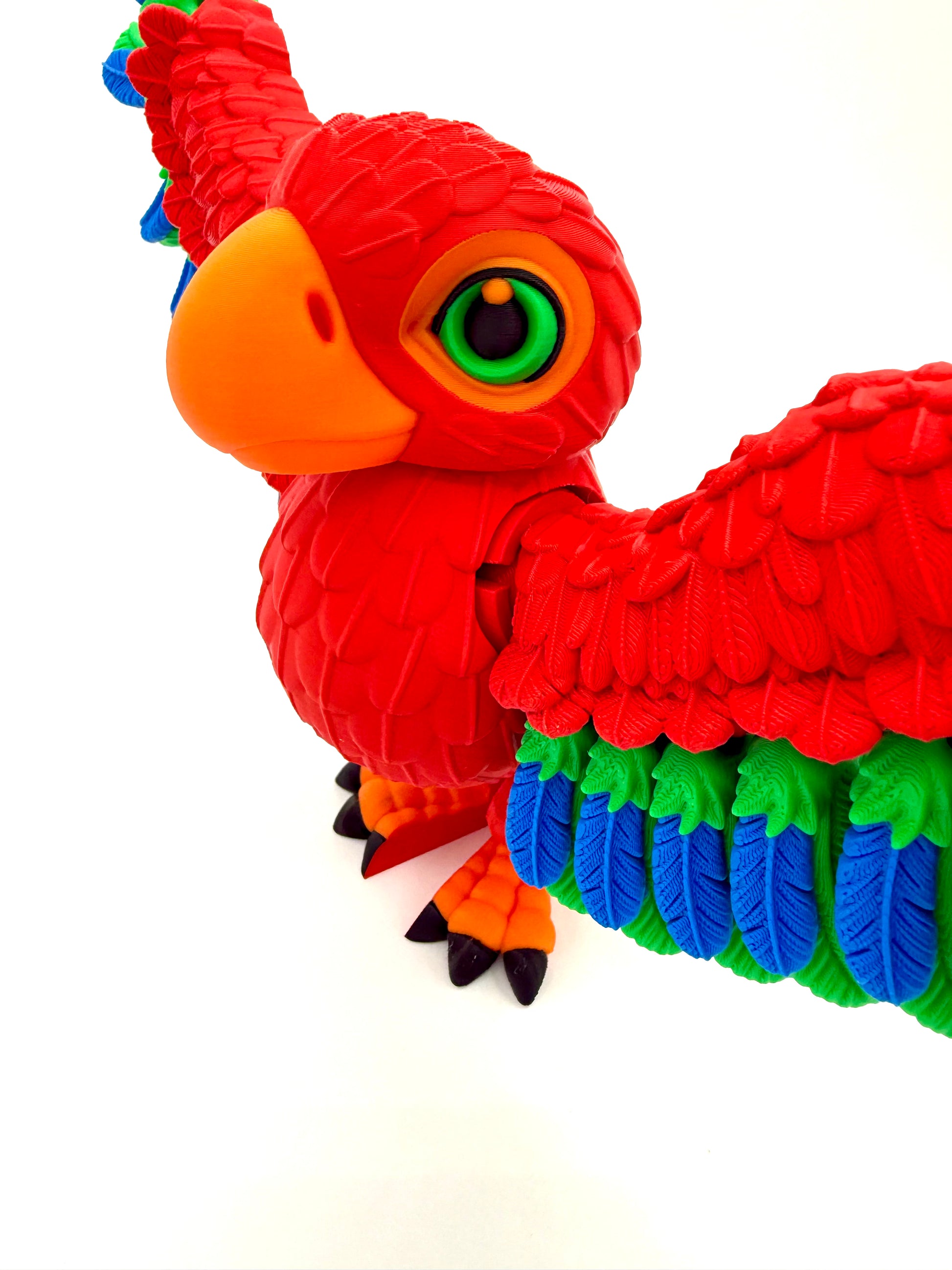 Introducing the Flexi Parrot! With its 14.5-inch wing span and vibrant colors, this articulating toy parrot is not only eye-catching but also a great conversation starter.