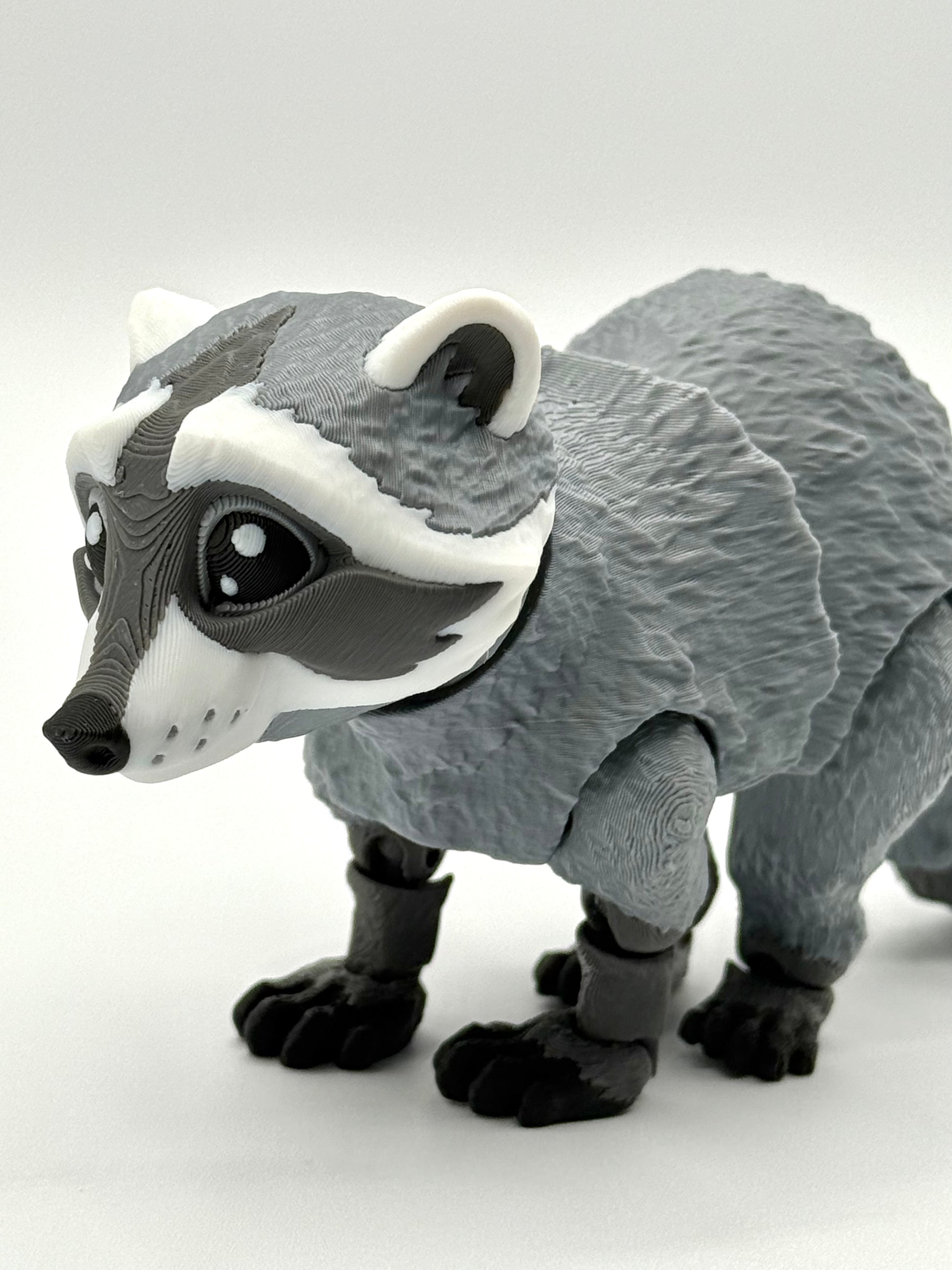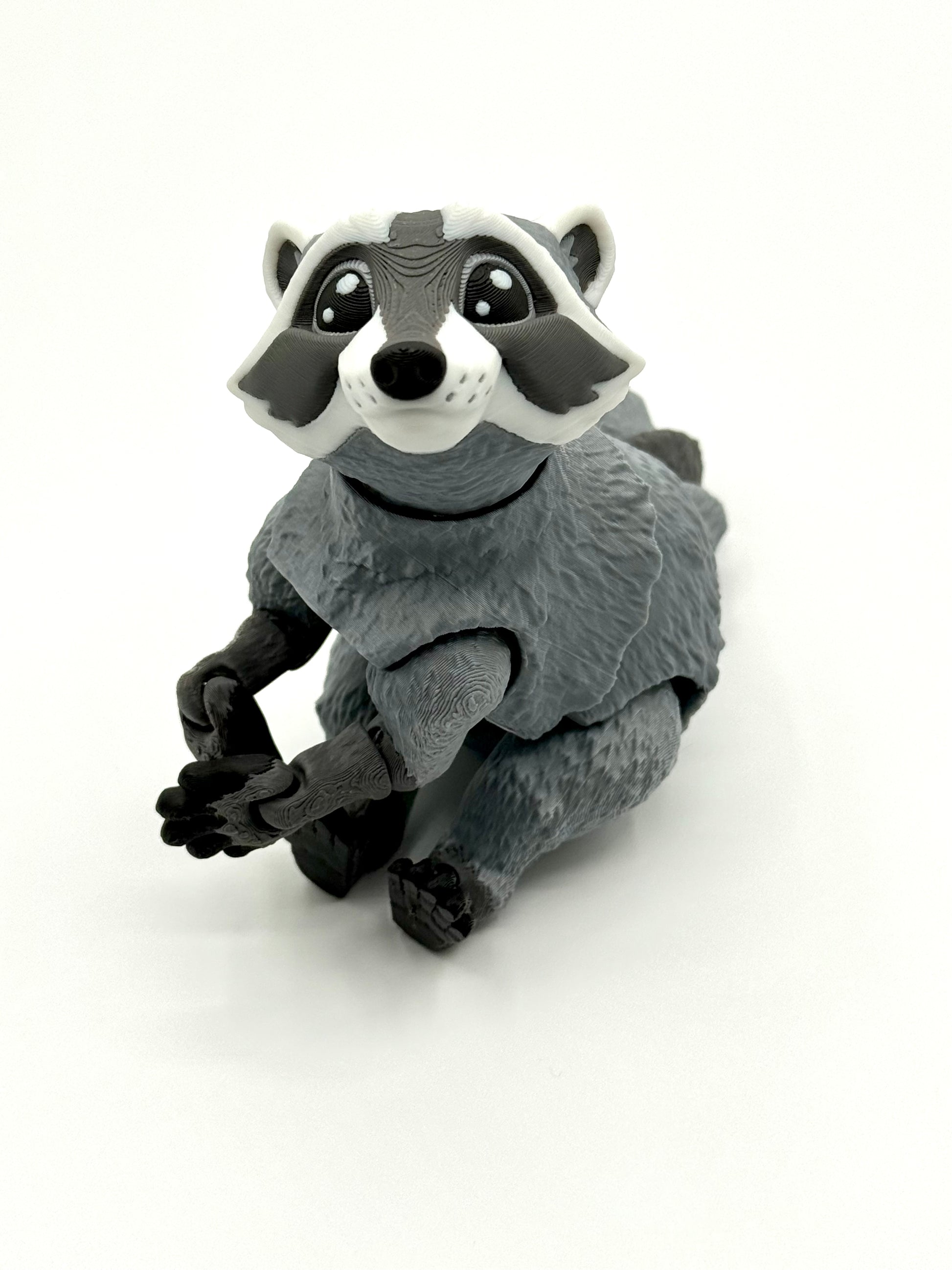 Introducing the Flexi Racoon - a 3D printed animal with articulating abilities! Let this quirky critter add some fun and flexibility to your life. Perfect for display or play - its unique design will surely make you smile! (Plus, no need for a raccoon-proof trash can.)