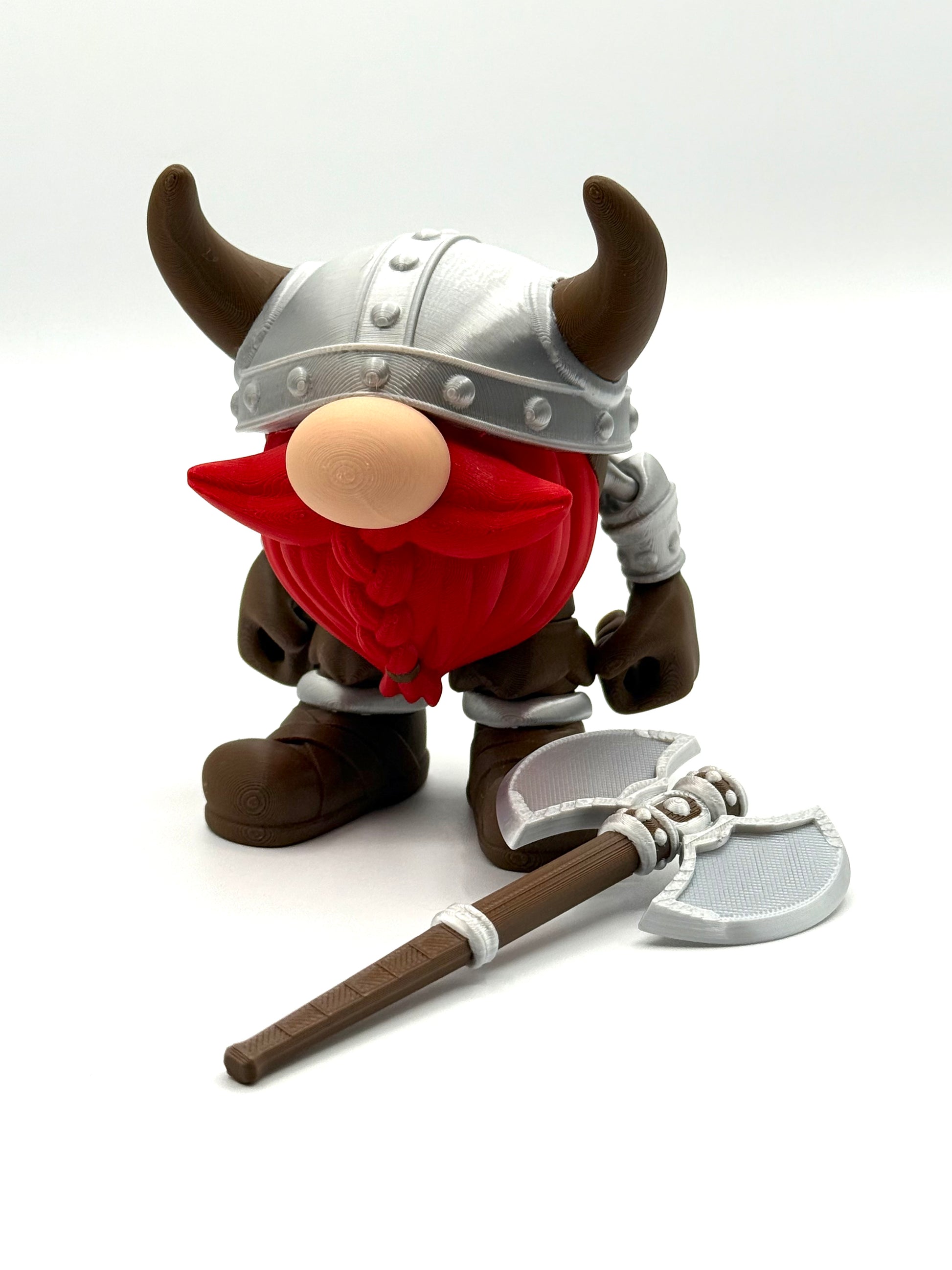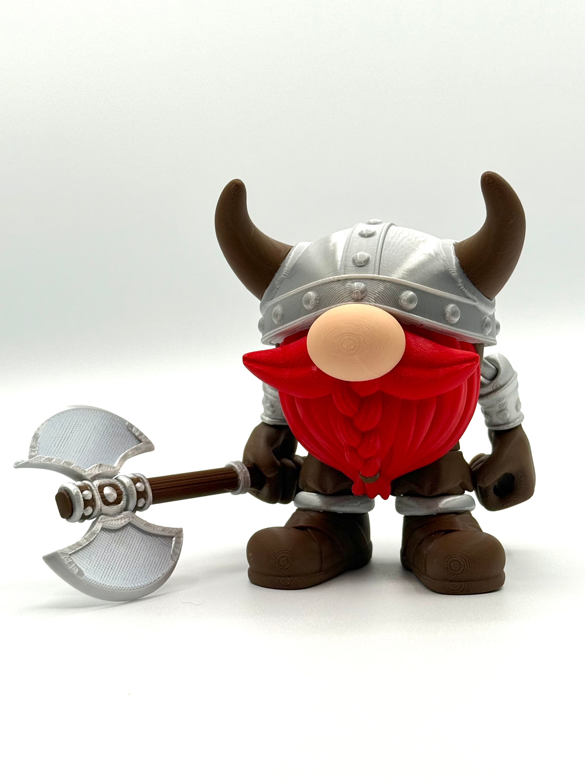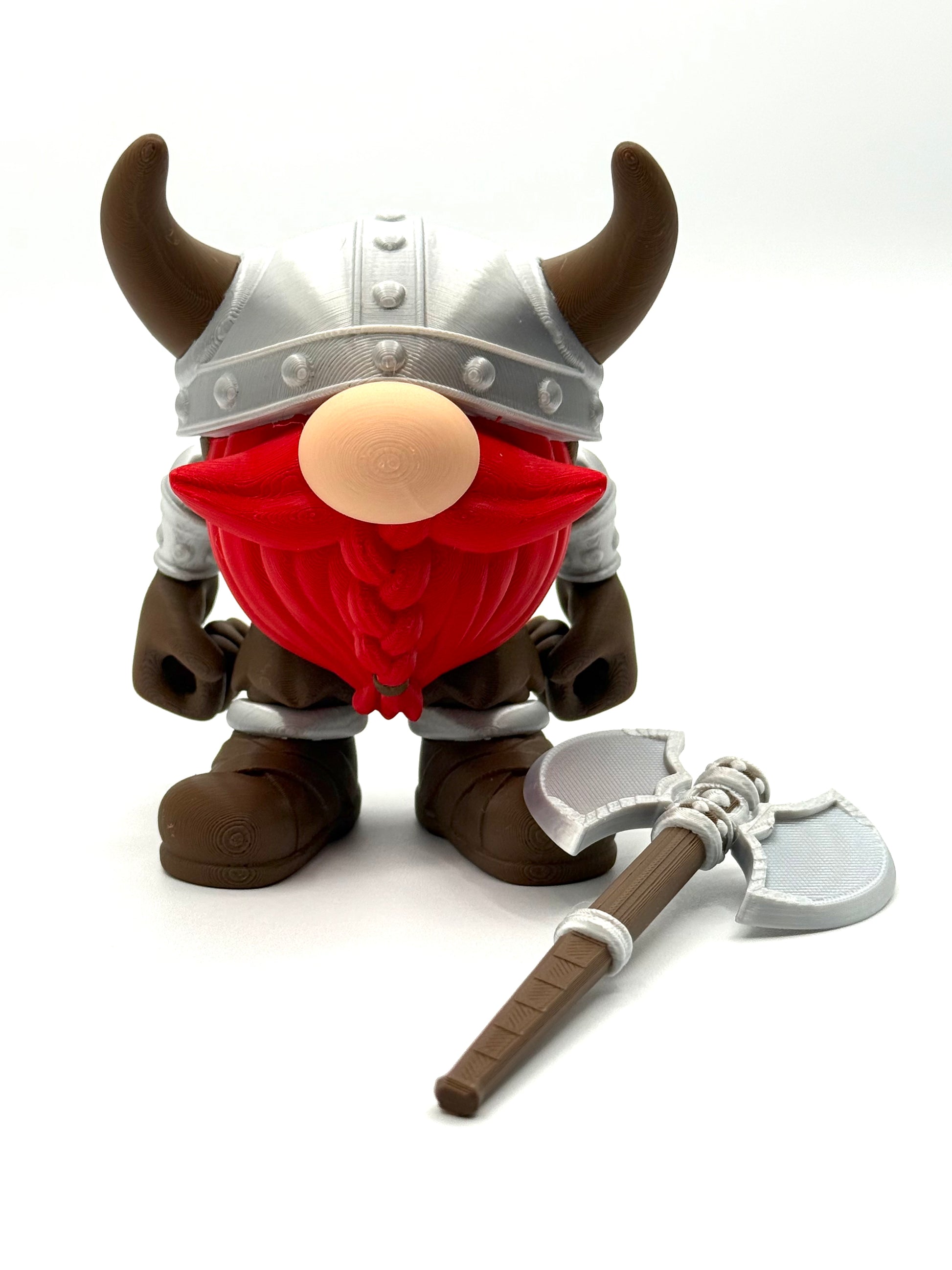 Unleash your inner warrior with the Flexi Viking Gnome. This red-bearded toy is flexi-articulating and ready for battle with a horned helmet and battle axe. A playful addition to any collection, this gnome will add some humor to your decor.