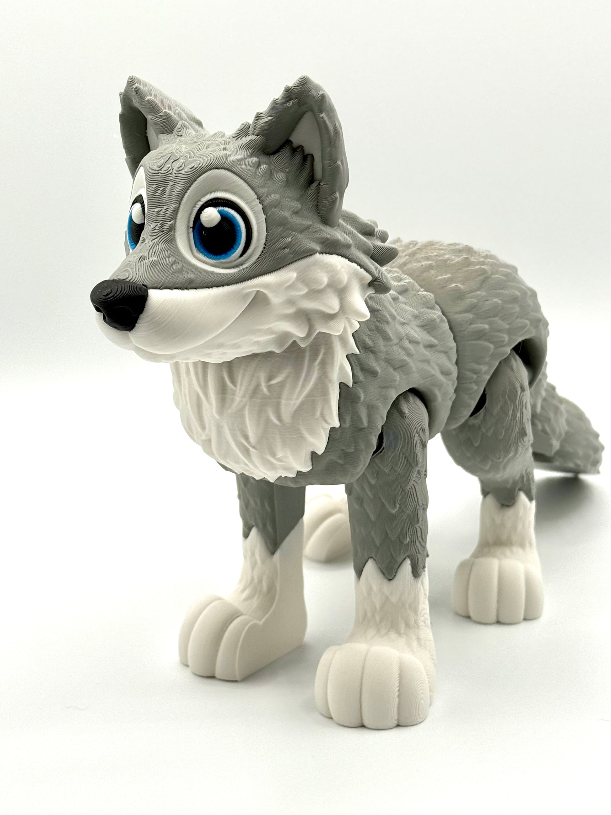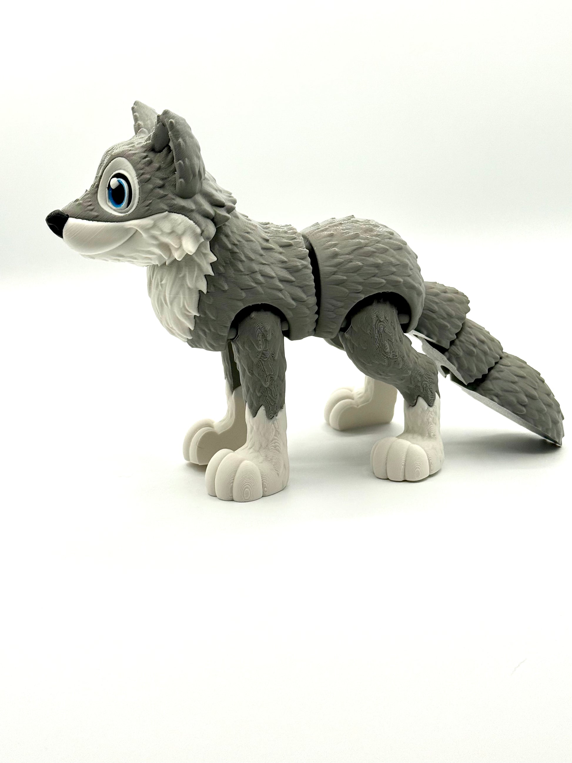 Unleash the wild with our jumbo Flexi Wolf! Its movable legs and tail make it perfect for playtime. With its yellow eyes and gray and white body, this wolf will bring a touch of nature to your home. (Hurry, get your hands on this howling good toy now!)