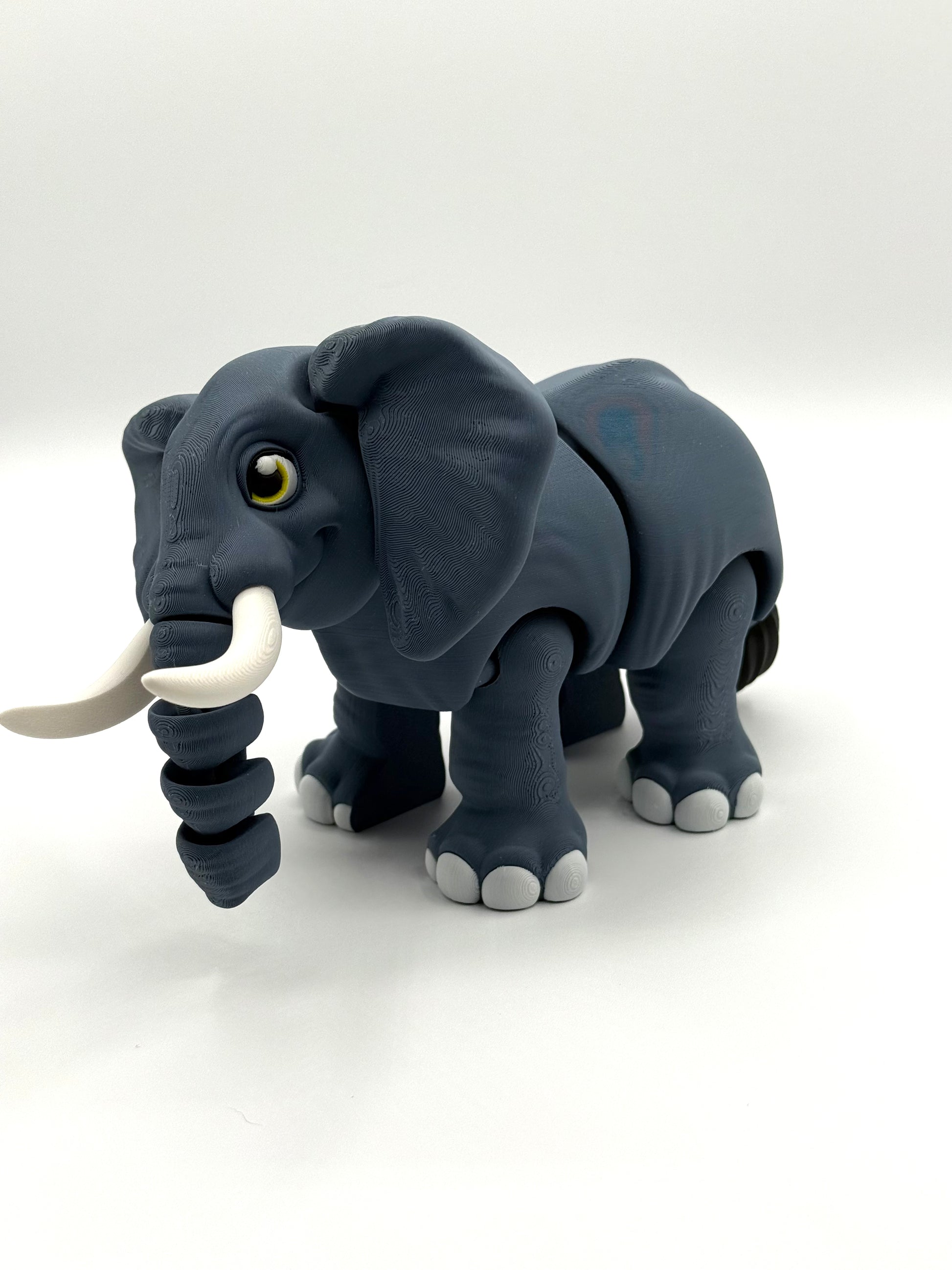 Meet our jumbo friend - the Flexi Elephant! With gorgeous ivory white tusks and fully movable ears, trunk, body, legs, and tail, this playful pachyderm is ready to join in on all your adventures. Go ahead, give him a squeeze and see what tricks he has up his trunk!