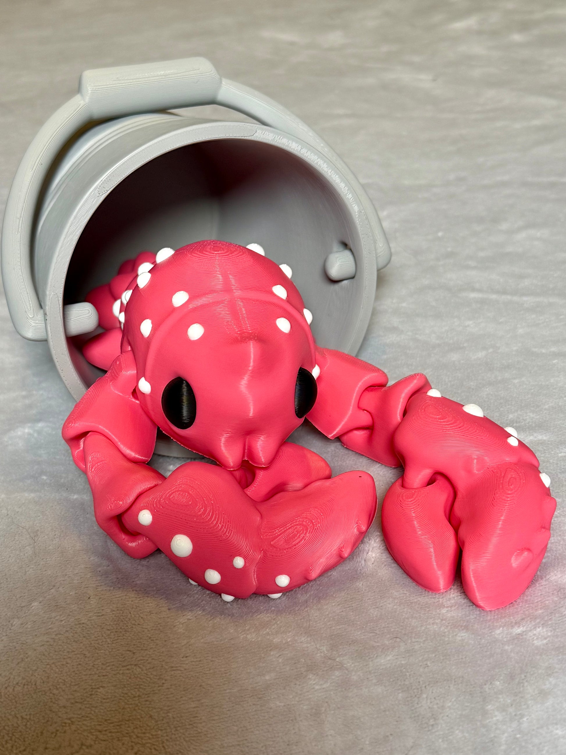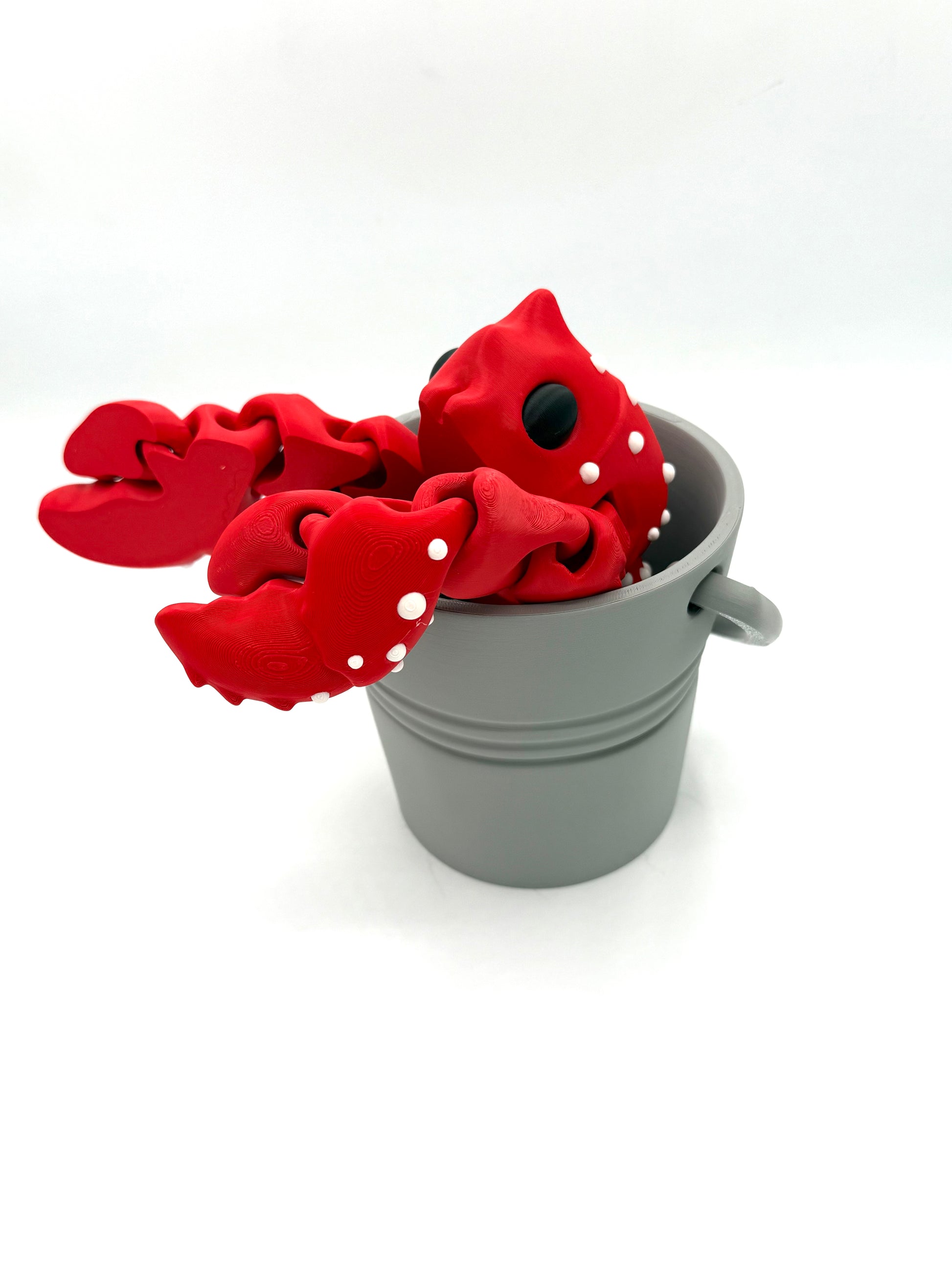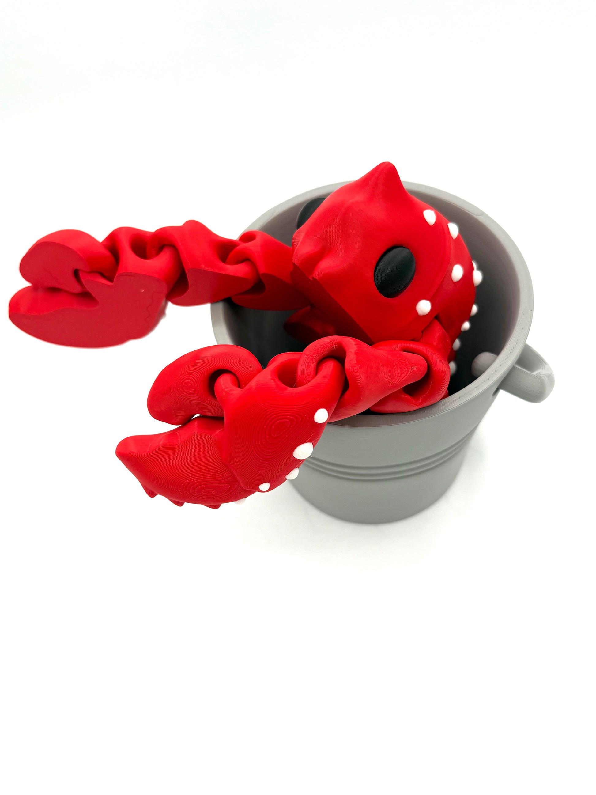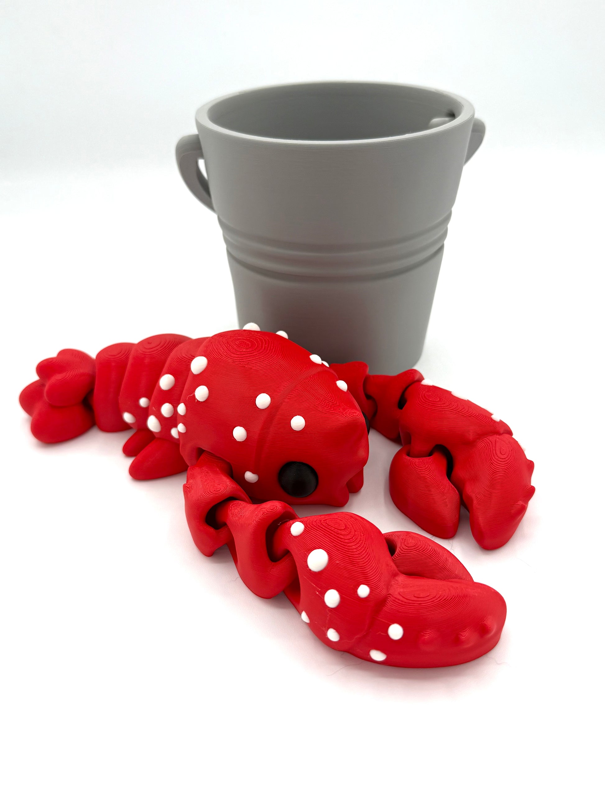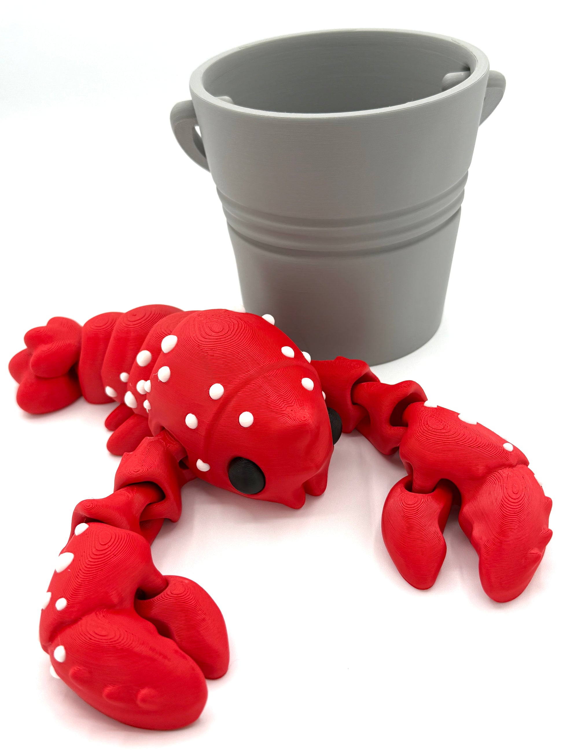 Introducing the Jumbo Lobster - a whimsical 3D printed crustacean measuring 6.5 inches in length. Comes with a bucket to add to its playful charm. Add some quirky flair to your home decor or give as a unique gift!
