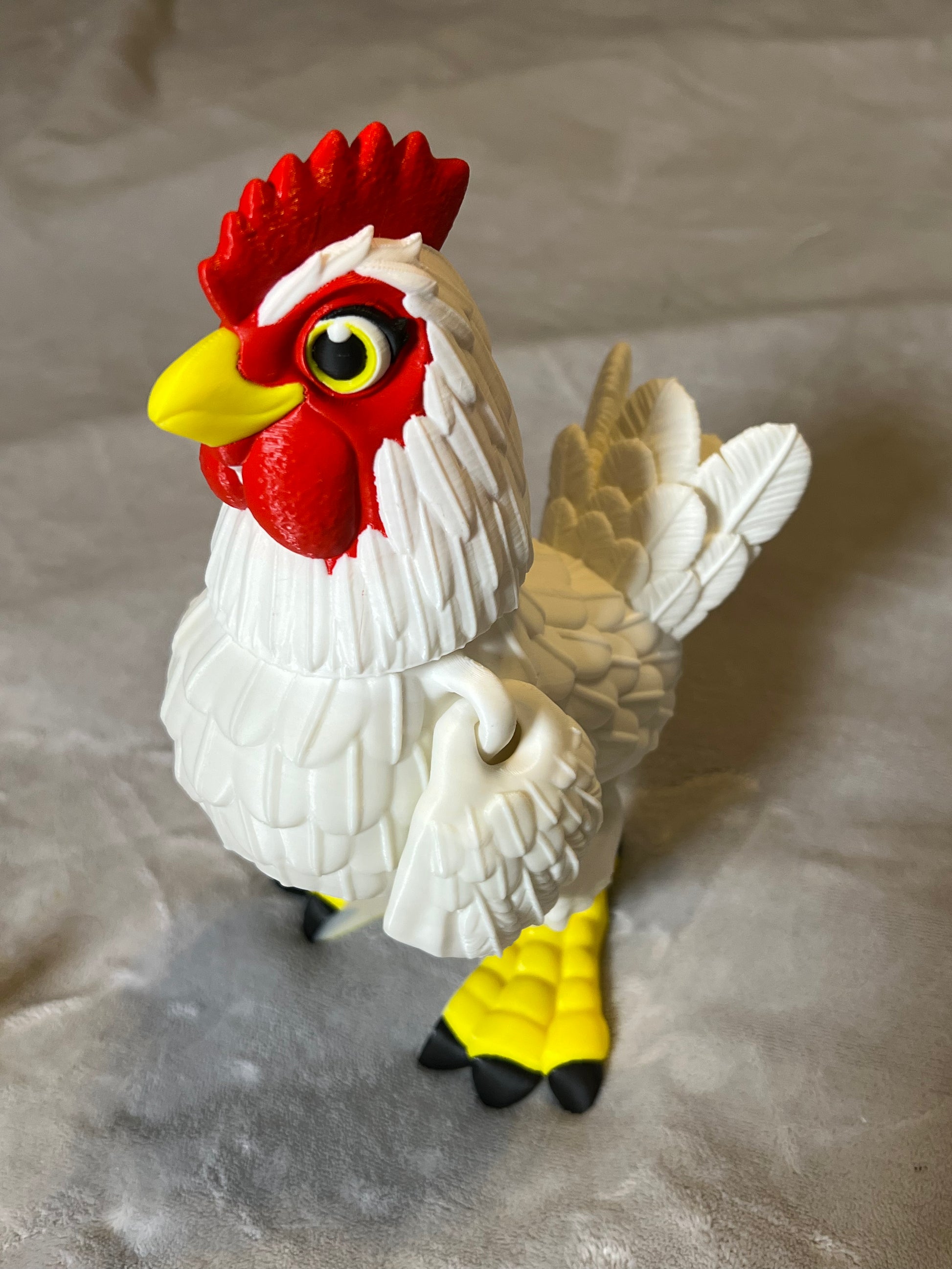 This quirky toy features an articulating Mother Hen. Watch as Mother Hen's wings and legs move with each hop and the hen’s legs keep up! Great for imaginative play.