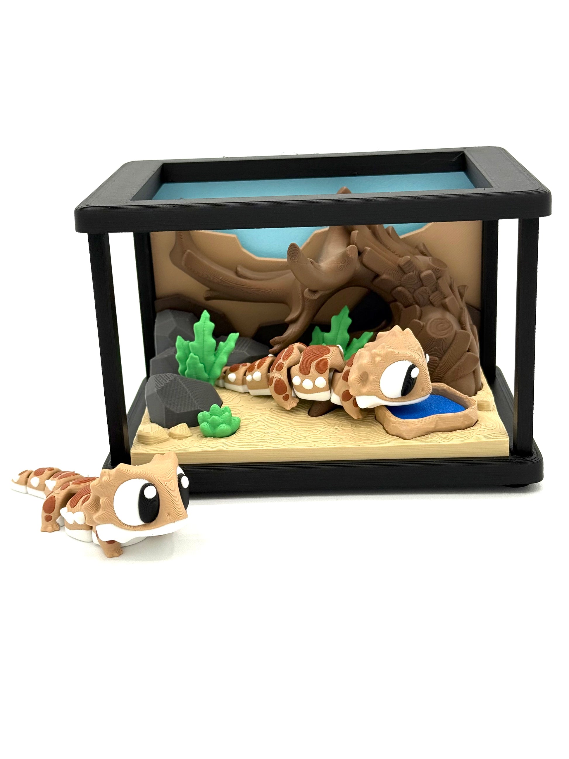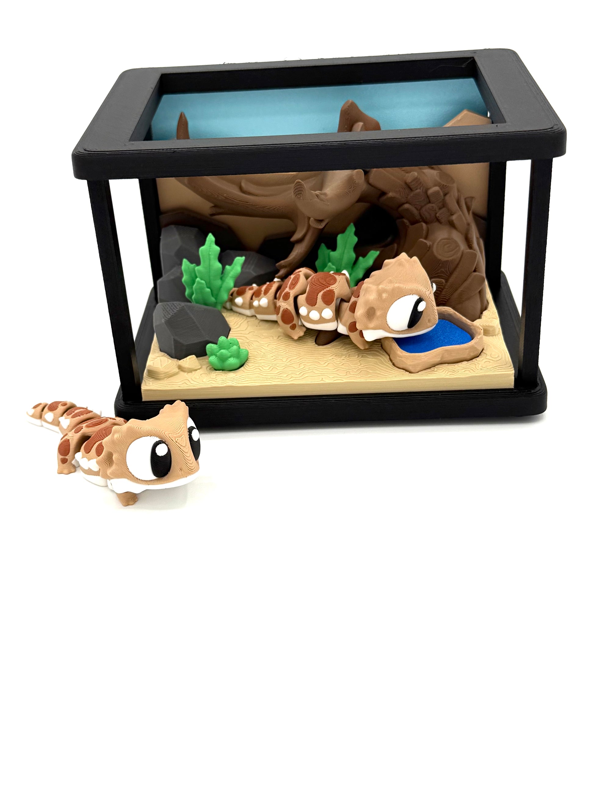 Double the fun with our Terrarium featuring two adorable mini bearded dragons! These little guys love to climb in their cage. Perfect for anyone seeking some cute and quirky company. (Just don't expect them to hold a conversation!)